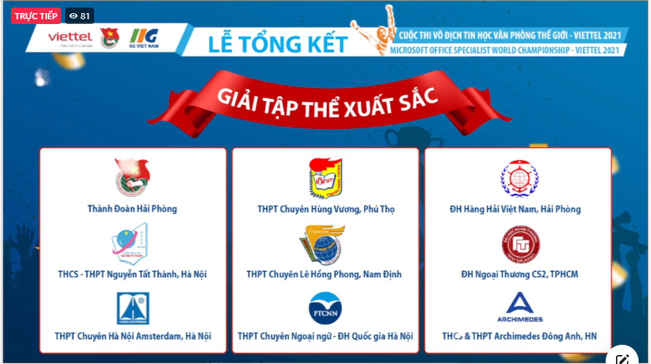Sáng 31/10, Lễ tổng kết và trao giải quốc gia Cuộc thi Vô địch Tin học văn phòng Thế giới – Viettel 2021 đã diễn ra theo hình thức trực tuyến. Cuộc thi do Trung ương Đoàn TNCS Hồ Chí Minh, Tổ chức giáo dục IIG Việt Nam phối hợp với các cơ quan liên quan tổ chức.