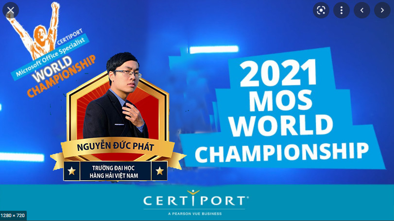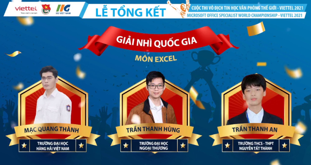 Buổi lễ đã vinh danh 3 quán quân cấp quốc gia của 3 môn thi trong đó có Nguyễn Đức Phát – sinh viên Trường Đại học Hàng Hải Việt Nam đạt giải nhất môn Microsoft Excel 2016. SV Nguyễn Đức Phát là nhà vô địch sẽ là đại diện cho Việt Nam tranh tài tại Vòng chung kết thế giới vào tháng 11/2021. Ngoài ra quán quân còn vinh dự được Trung ương Đoàn TNCS Hồ Chí Minh trao tặng Huy hiệu Tuổi trẻ sáng tạo - Huy hiệu cao quý nhất của tuổi trẻ Việt Nam và phần thưởng trị giá 80 triệu đồng.