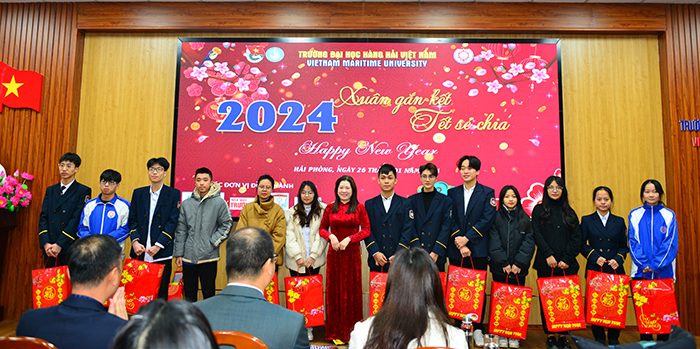 Cũng trong buổi gặp gỡ này, Thầy Phó Hiệu trưởng đã trao quà cho 15 em sinh viên quốc tế đến từ các nước như Angola, Maroc, Nigeria, Myanmar, Lào, Hàn Quốc hiện đang học tập tại Trường Đại học Hàng hải Việt Nam cùng 55 sinh viên có hoàn cảnh khó khăn, sinh viên ở các tỉnh xa đang học tập tại Trường.