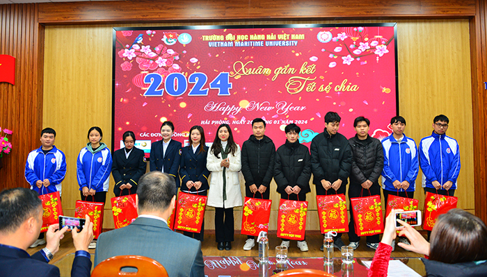 Tết Giáp Thìn đang đến gần, không khí đón Xuân đã tràn ngập trên mỗi tuyến đường, con phố, người người, nhà nhà đều hướng về một Năm mới với những khởi đầu mới đang chờ đón, đồng thời muốn tìm về những gì gần gũi và thân thương nhất. Sáng 26/01, Trường Đại học Hàng hải Việt Nam đã tổ chức Chương trình tặng quà Tết cho lưu học sinh và sinh viên với chủ đề “Xuân gắn kết - Tết sẻ chia” nhằm mục đích góp phần lan tỏa không khí Tết cổ truyền Việt Nam đến với các bạn sinh viên quốc tế, sinh viên có hoàn cảnh khó khăn, sinh viên ở các tỉnh xa đang học tập tại Trường.