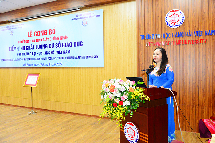 Tại buổi Lễ, PGS.TS. Nguyễn Phương Nga - Giám đốc Trung tâm KĐCLGD - Hiệp hội CTĐHCĐVN đánh giá cao những điểm mạnh của Trường Đại học Hàng hải Việt Nam và đặc biệt là kế hoạch Nhà trường triển khai để thực hiện các khuyến nghị của Hội đồng Kiểm định chất lượng giáo dục.