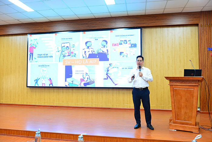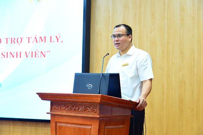Tại Hội nghị, PGS.TS. Trần Thành Nam trao đổi một số nội dung như: Sinh viên - Họ là ai, thực trạng sức khỏe tâm thần của sinh viên trong xã hội hiện nay, những vấn đề sinh viên đang phải đối mặt, Kỹ năng nhận biết các vấn đề tinh thần của sinh viên, kỹ năng chăm sóc sức khoẻ tinh thần cho sinh viên,.... Diễn giả Trần Thành Nam nhấn mạnh và chỉ rõ các đặc điểm cần chú ý của thế hệ sinh viên GenZ, kỹ năng ứng xử, hỗ trợ, giúp đỡ những sinh viên có vấn đề về sức khỏe tinh thần, việc ứng dụng các biện pháp công nghệ để nhận biết và chăm sóc sức khoẻ tinh thần cho sinh viên…..