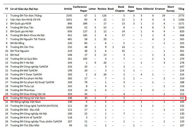 Trường Đại học Hàng hải Việt Nam đứng thứ 20 trong top 50 Trường Đại học có công bố quốc tế tốt nhất Việt Nam trong năm 2019.