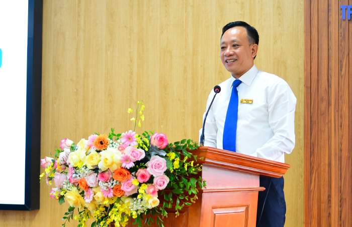 PGS.TS. Phạm Xuân Dương - Hiệu trưởng Nhà trường phát biểu chỉ đạo, giao nhiệm vụ cho các cán bộ mới được bổ nhiệm