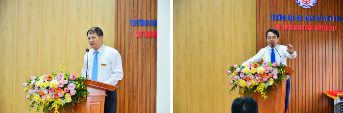 Nhân sự kiện trọng đại này, thầy Hiệu trưởng thay mặt Ban lãnh đạo Nhà trường ghi nhận những cống hiến to lớn của đồng chí TS. Phạm Văn Minh - Nguyên Trưởng khoa Cơ sở -Cơ bản và ThS. Lê Kim Hoàn - Nguyên Giám đốc Nhà xuất bản Hàng hải đã hoàn thành nhiệm vụ mà Đảng và Nhà nước giao phó. Đồng thời thầy Hiệu trưởng cũng mong muốn tiếp tục nhận được những ý kiến đóng góp bằng trí tuệ, kinh nghiệm cho sự nghiệp phát triển chung của Trường Đại học Hàng hải Việt Nam.