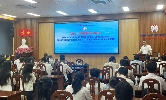 Thực hiện công tác năm học của Khối thi đua các trường đại học trên địa bàn thành phố Hải Phòng, sáng 19/10/2024, tại Trường Đại học Hàng hải Việt Nam, các trường đại học trên địa bàn thành phố Hải Phòng đã phối hợp tổ chức Hội nghị khoa học “Sinh viên với công trình nghiên cứu khoa học phục vụ phát triển kinh tế xã hội thành phố Hải Phòng”. Đây là hoạt động nhằm thúc đẩy phong trào nghiên cứu khoa học trong sinh viên, lan toả niềm đam mê nghiên cứu khoa học, tạo môi trường trao đổi tri thức, góp phần phát hiện và bồi dưỡng năng lực nghiên cứu của sinh viên.