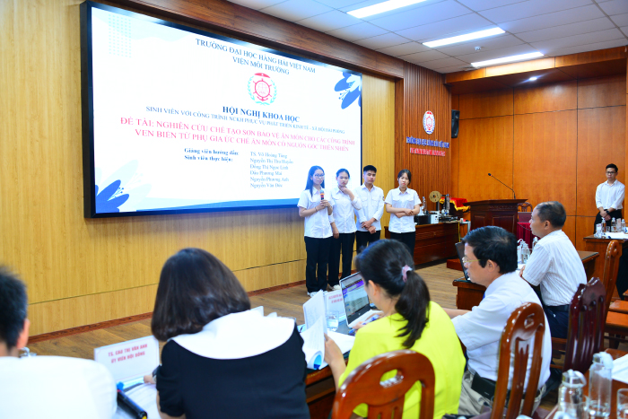 Đối với công tác nghiên cứu khoa học của sinh viên tại Trường Đại học Hàng hải Việt Nam, dưới sự hướng dẫn tận tình của các thầy/cô, sự chỉ đạo của Ban chủ nhiệm các khoa chuyên môn và Hội đồng Khoa học, đã hướng các nghiên cứu tới các vấn đề gần gũi, gắn liền với các hoạt động học tập, các vấn đề xung quanh cuộc sống và mang tính ứng dụng cao. 02 đề tài mang đến tham dự tại Hội nghị lần này cũng không nằm ngoài định hướng đó, cụ thể: 01 báo cáo thuộc Khoa Máy tàu biển với đề tài: “Nghiên cứu thiết kế, chế tạo trạm lắp ráp thủ công có thể tùy biến theo nhân trắc học và tích hợp giám sát thao tác phục vụ cải tiến nâng cao hiệu suất làm việc cho công nhân” và 01 báo cáo thuộc Viện Môi trường với đề tài: “Nghiên cứu chế tạo sơn bảo vệ ăn mòn cho các công trình ven biển từ phụ gia ức chế ăn mòn có nguồn gốc thiên nhiên”.